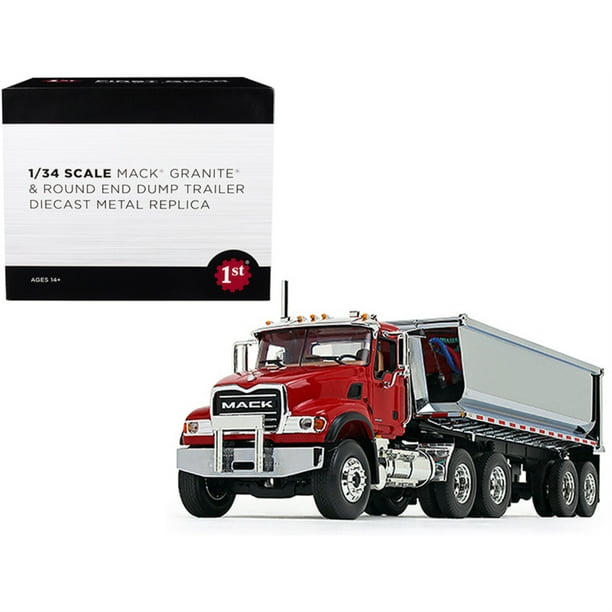 1 34 Red Mack Granite Truck With Round End Chrome Dump Trailer By First Gear 10 4181 Walmart Com