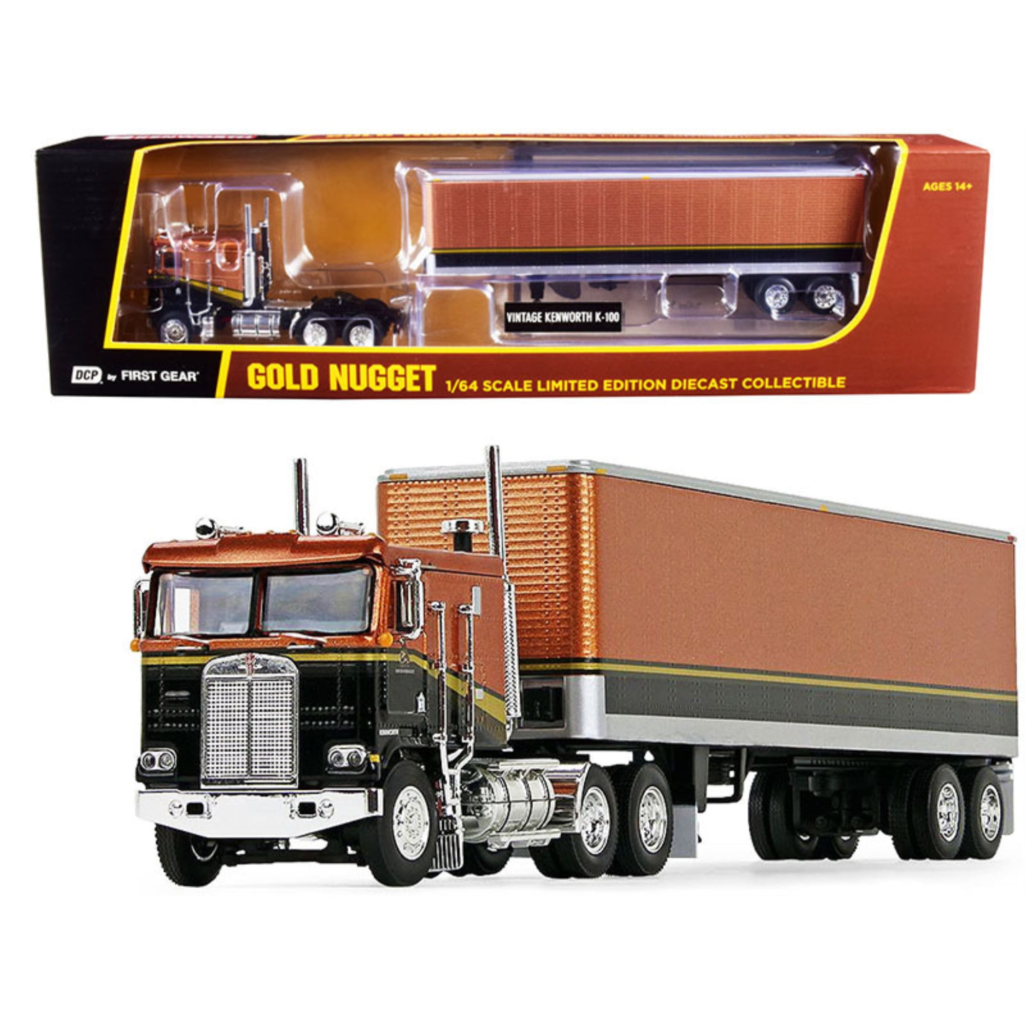 Kenworth K100 Coe Flattop Cab With 40 Vintage Dry Goods Trailer Gold Nugget Gold Black 1 64 Diecast Model By Dcp First Gear Walmart Com